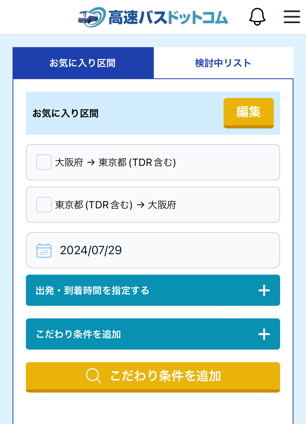 - よく使う路線や、検討中にした便は、お気に入り区間・検討中に残せておけるので何度も検索する必要なし!