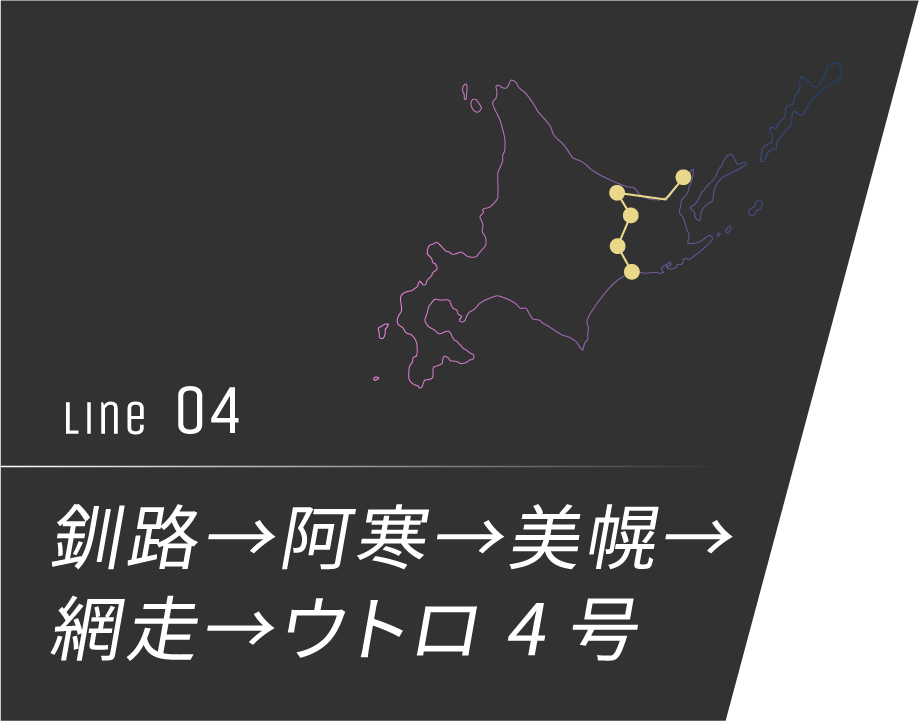 | おーろらターミナル (道の駅「流氷街道網走」) ※2 | 15:10 | 16:40 | 降車 | 下車観光 90分 |